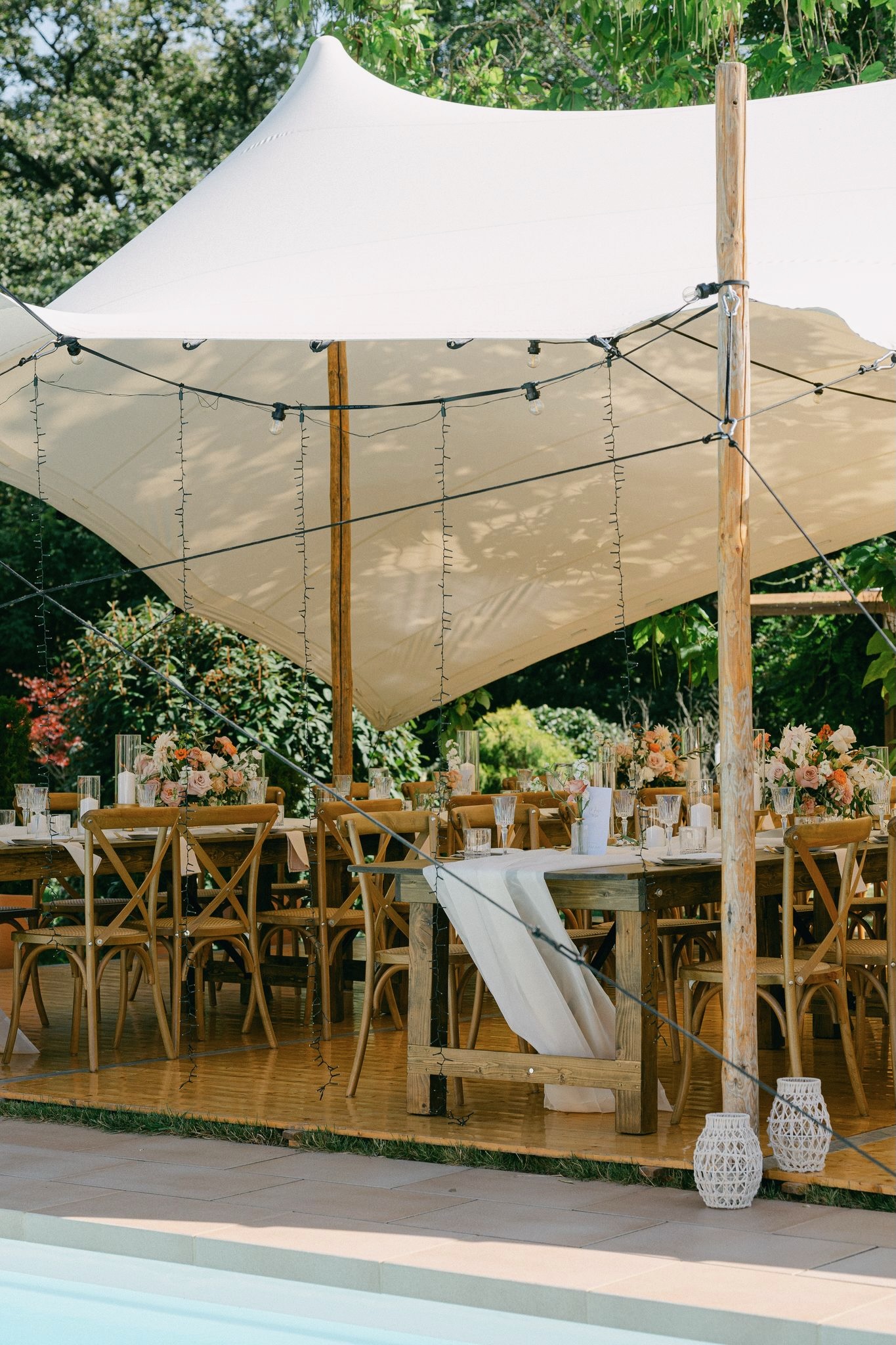 Stretchzelte sind rechteckige Membrane, die mit Holzstützen nach oben gedehnt werden. Unsere Stretchzelte sind sehr flexibel aufbaubar und sind individuell modular erweiterbar.